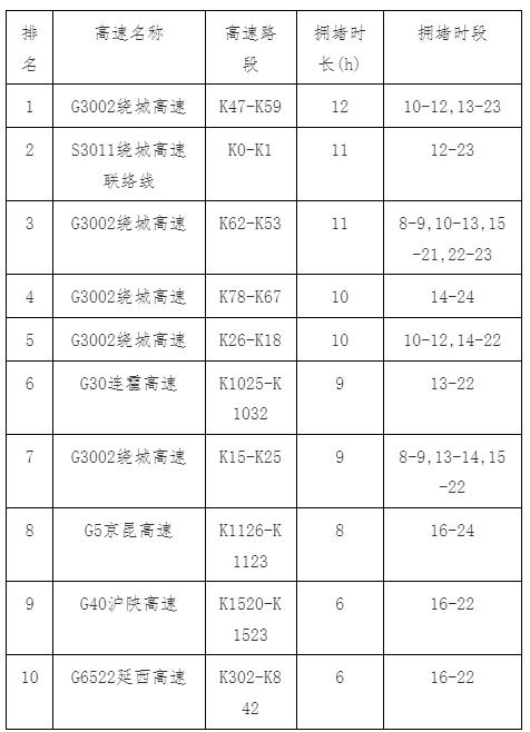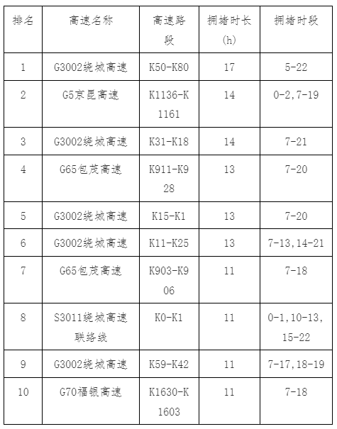 2024年5月1日上午拥堵前10路段↓