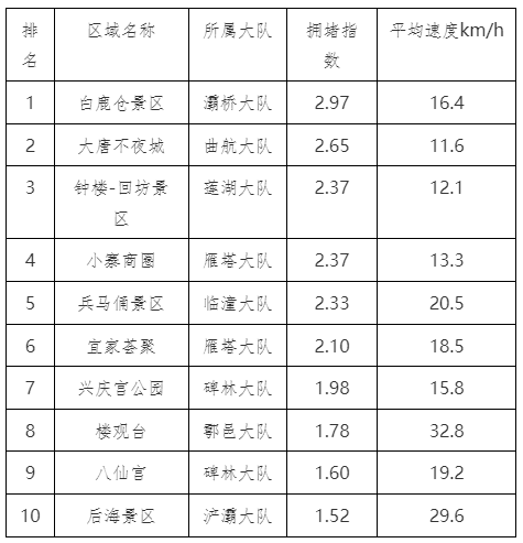 2024年五一前一天晚高峰拥堵前10路段↓